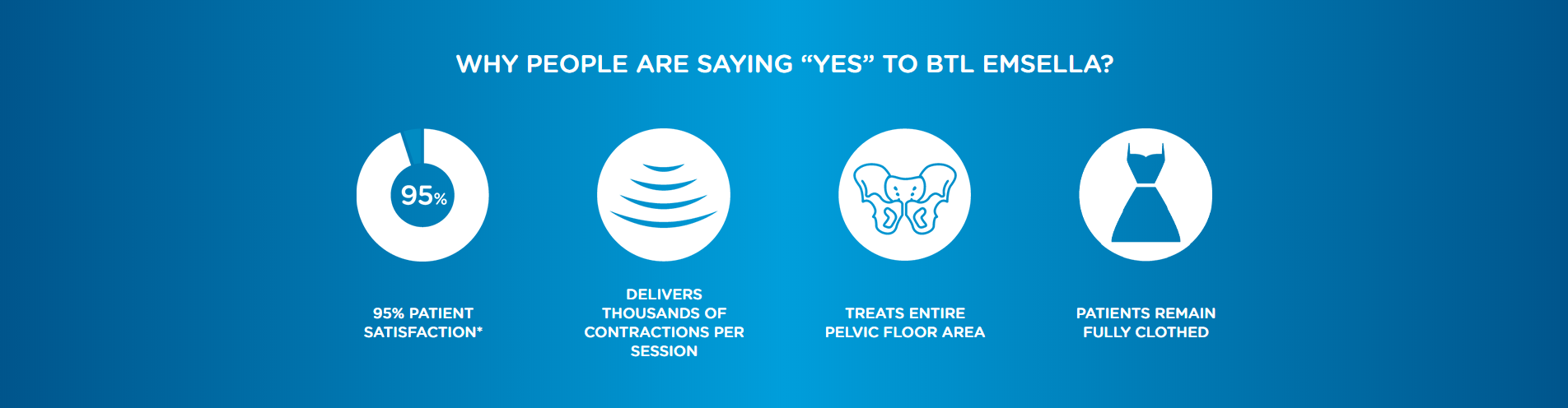 Key effectiveness is based on focused electromagnetic energy A single BTL EMSELLA the session brings thousands of supramaximal pelvic floor muscle contractions, which are extremely important in muscle re-education of incontinent patients.